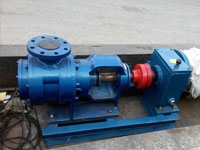 硅油装卸泵采用外部润滑方式。轴承部分和泵腔工作部分由密封部分隔开,轴承部分可通过油杯从外部定期加油润滑。泵体内设有加热或冷却夹套,可通过外部装置实现加温或降温过程。泵有泵体、泵盖、主动轴、内、外转子、支座、轴承等部分组成。泵装置由泵、电机和底座组成。泵和电机固定安装在底座上,传动方式有皮带传动和联轴器直联两种方式。